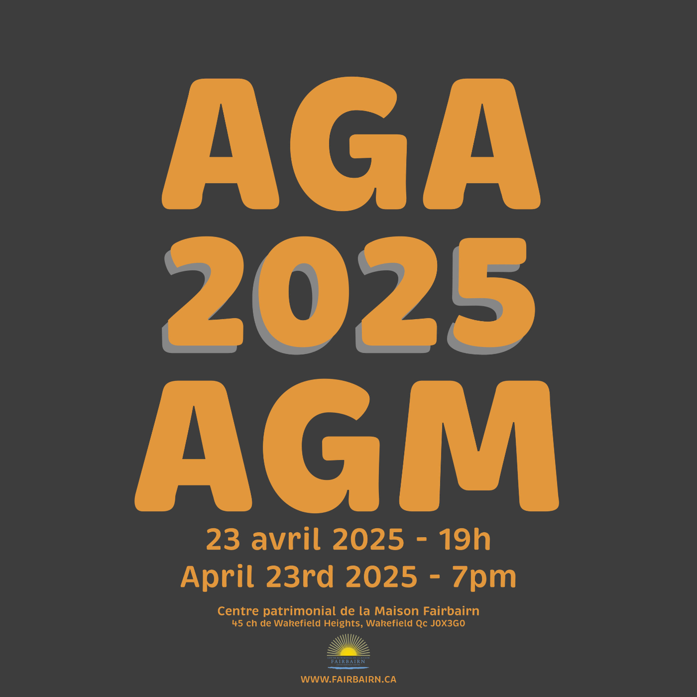On behalf of the Board of Directors of the Fairbairn House Heritage Centre, it is my pleasure to invite you to this year’s Annual General Meeting. We would like to thank you for your involvement and support, and we will be sharing highlights of our past year and exciting news about the coming season. All members in good standing are eligible to vote at the AGM.